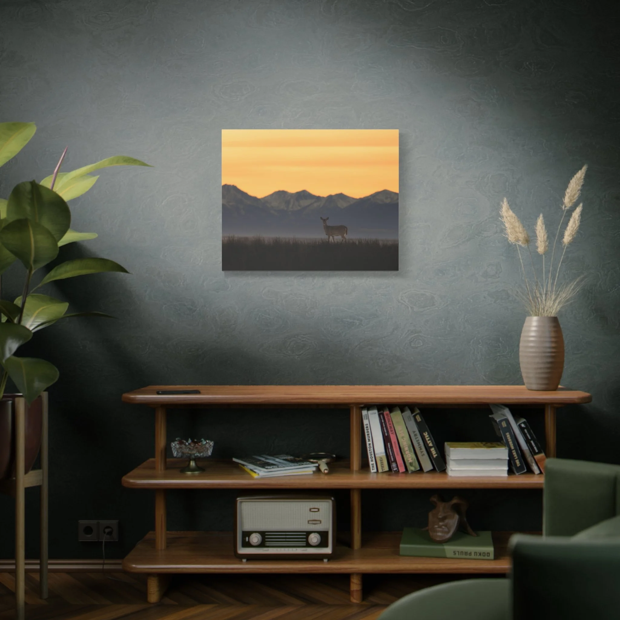 Bring the serene beauty of nature into your home with this stunning canvas print featuring a deer at sunset with a mountain backdrop. Perfect for nature lovers and those who appreciate peaceful, scenic artwork. Ideal for decorating living rooms, bedrooms, or offices. Great for nature-themed home decor, cabins, and rustic settings. Perfect for gifting during holidays like Christmas, birthdays, or housewarmings.