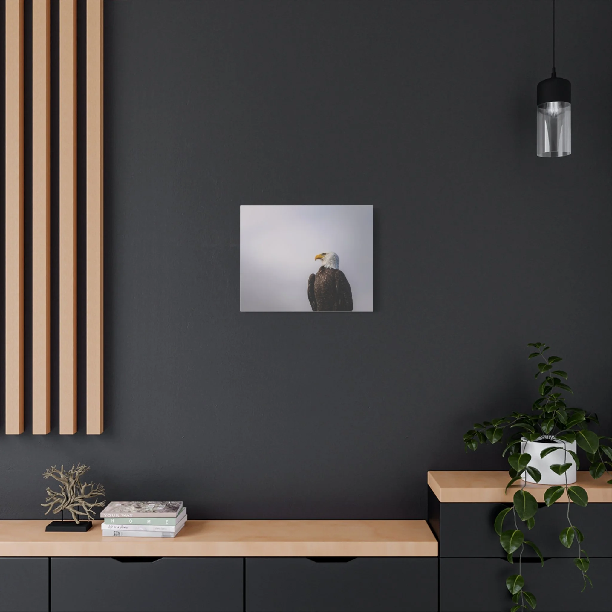 This stretched matte canvas captures a striking bald eagle portrait with crisp detail and natural depth. Hung above a mantle or leaned on a shelf, the image pulls you in — the eagles piercing gaze and textured feathers feel alive against the subtle matte finish. Crafted on a cotton-poly canvas and mounted on a slim 1.25" radiata pine frame, it balances refined presentation with a rustic warmth that complements cabin walls, study corners, or entryway nooks. The soft rubber dots protect surfaces and keep the piece steady, while the included back hanging hardware makes display simple. Printed with non-toxic latex inks and UL Greenguard Gold-certified inks, the piece emphasizes both image fidelity and safer indoor air quality. Choose from multiple orientations and sizes to find the scale that fits your space and lets that eagle command attention.
