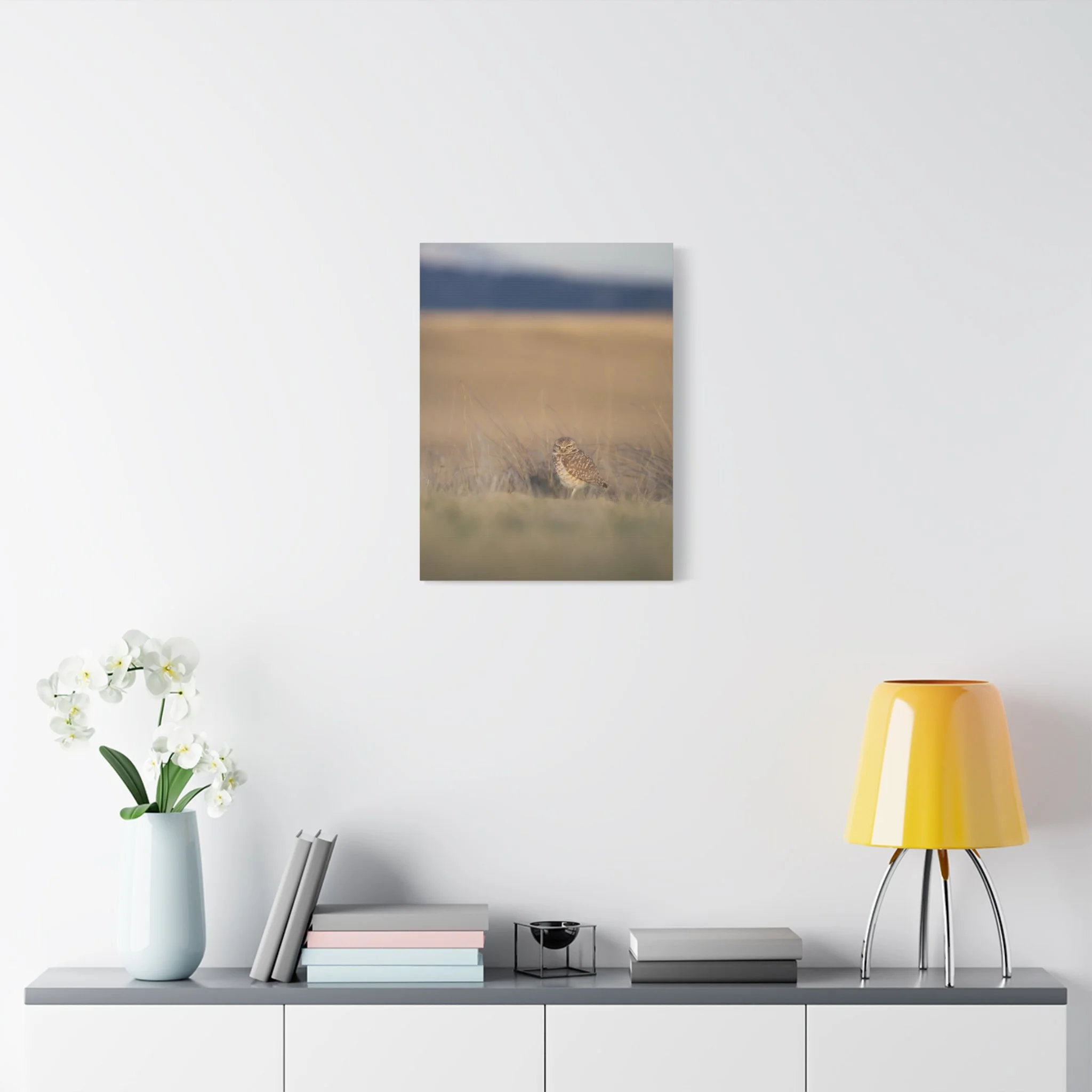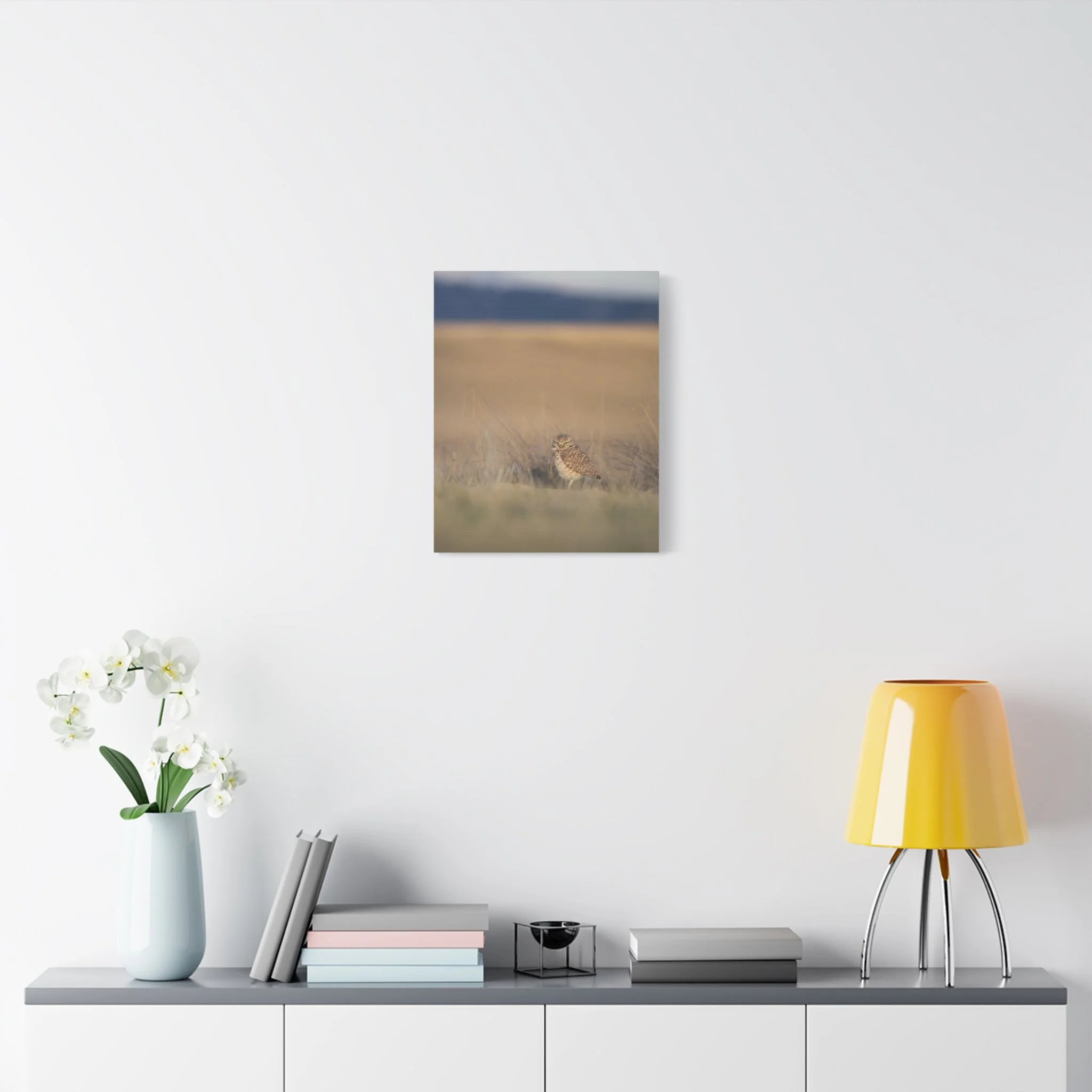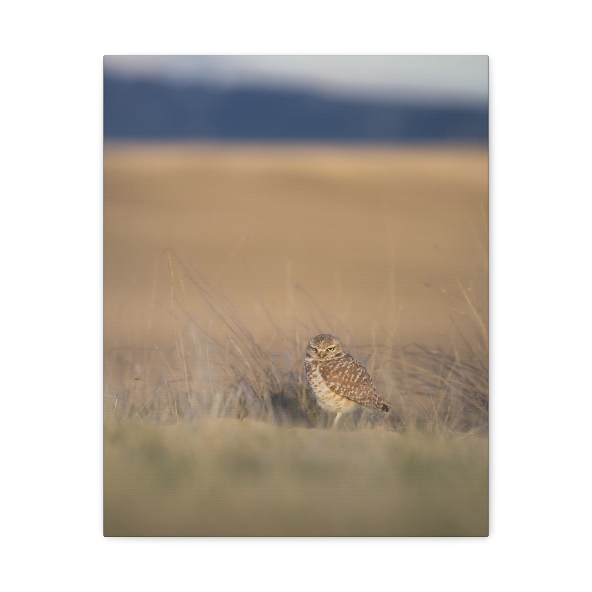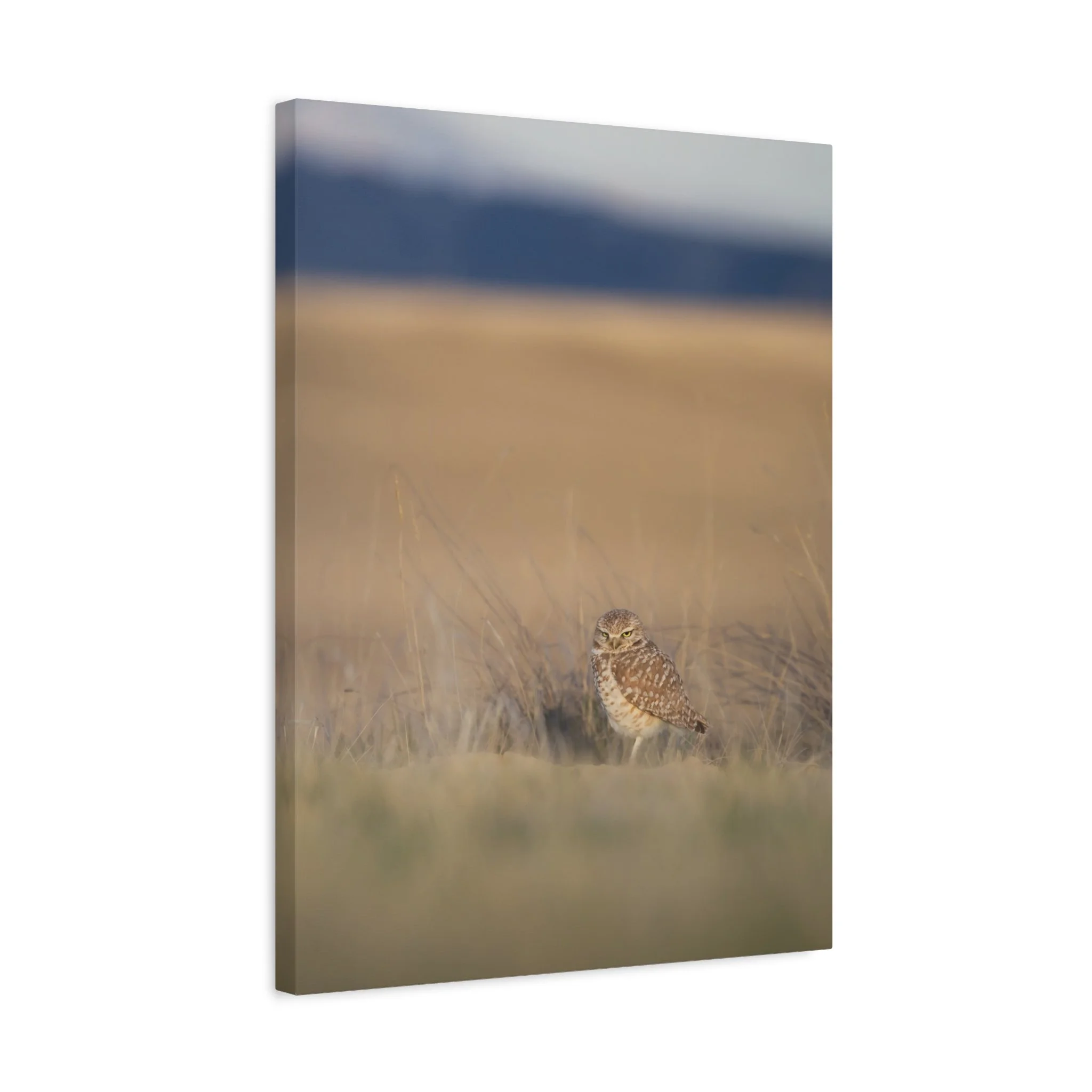 A silent moment captured on matte canvas: a burrowing owl - eyes fixed on the earth as twilight tightens. The stretched canvas texture brings out feather detail and muted earth tones, giving the scene a tactile, intimate presence on your wall. Hang it in a reading nook, study, or entryway to invite a pause — a small, wild witness to the rhythms of dusk. The subtle matte finish keeps glare away, so the owl’s furtive gaze reads clearly from across the room. This piece fits into calm, nature-focused spaces where quiet observation and a connection to the outdoors are treasured.