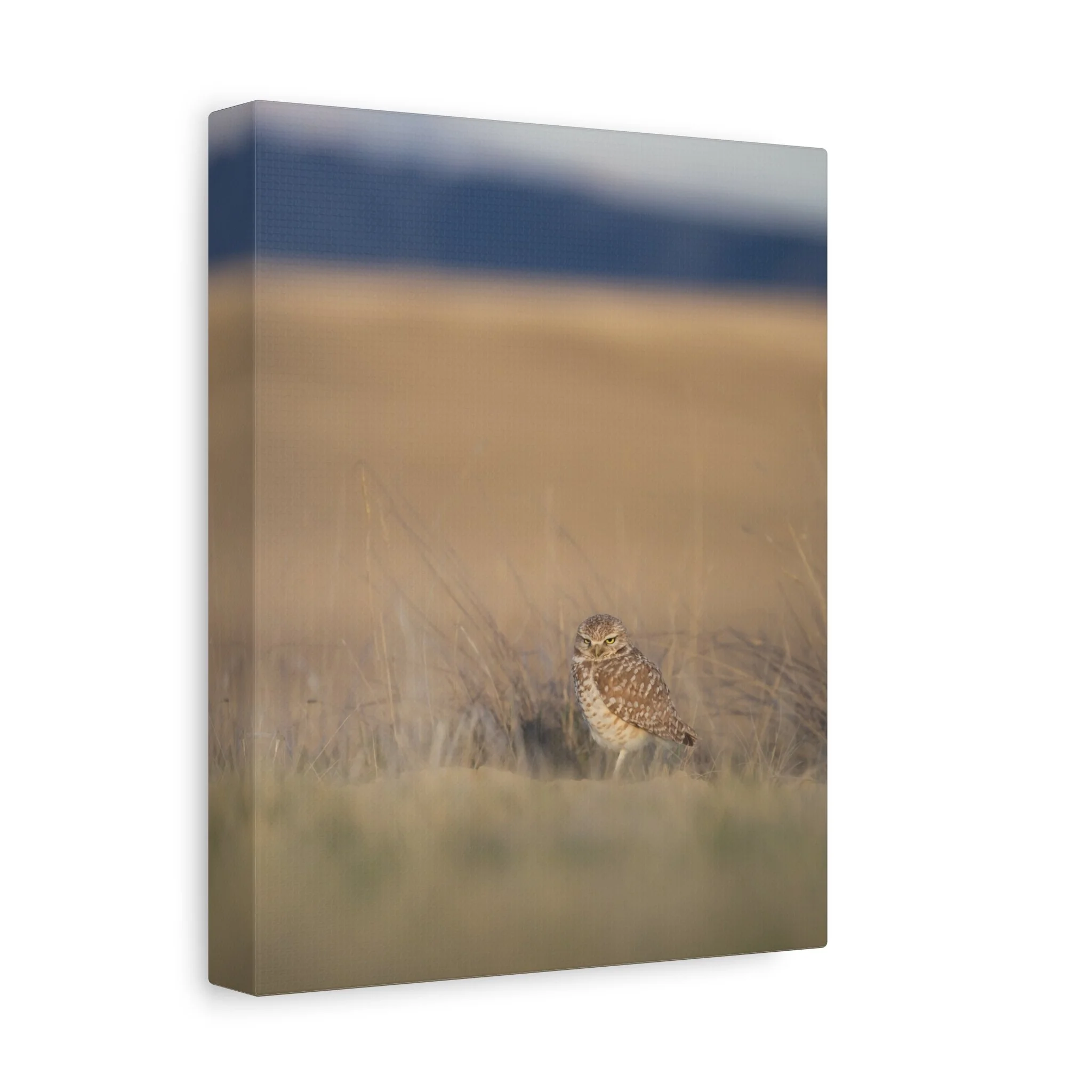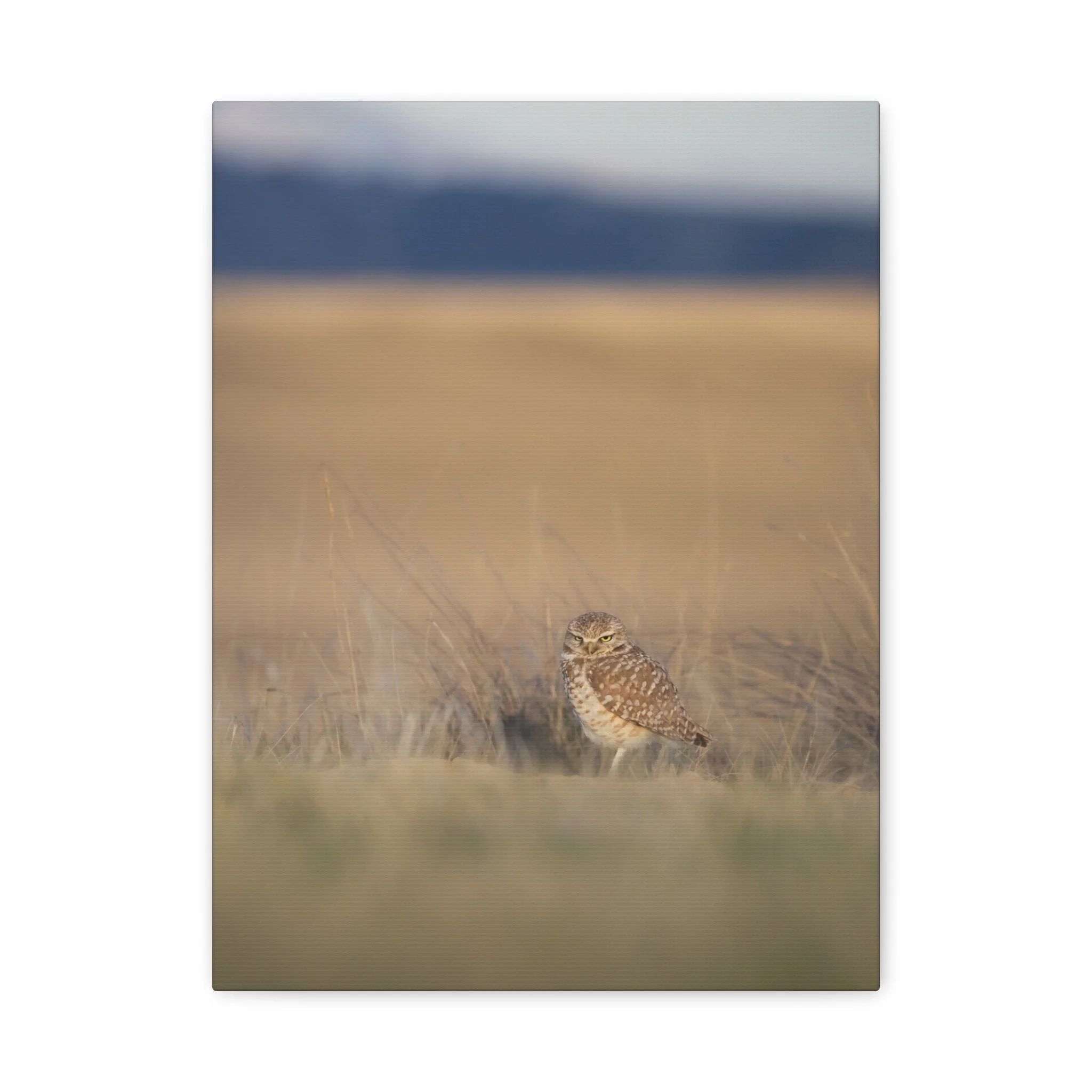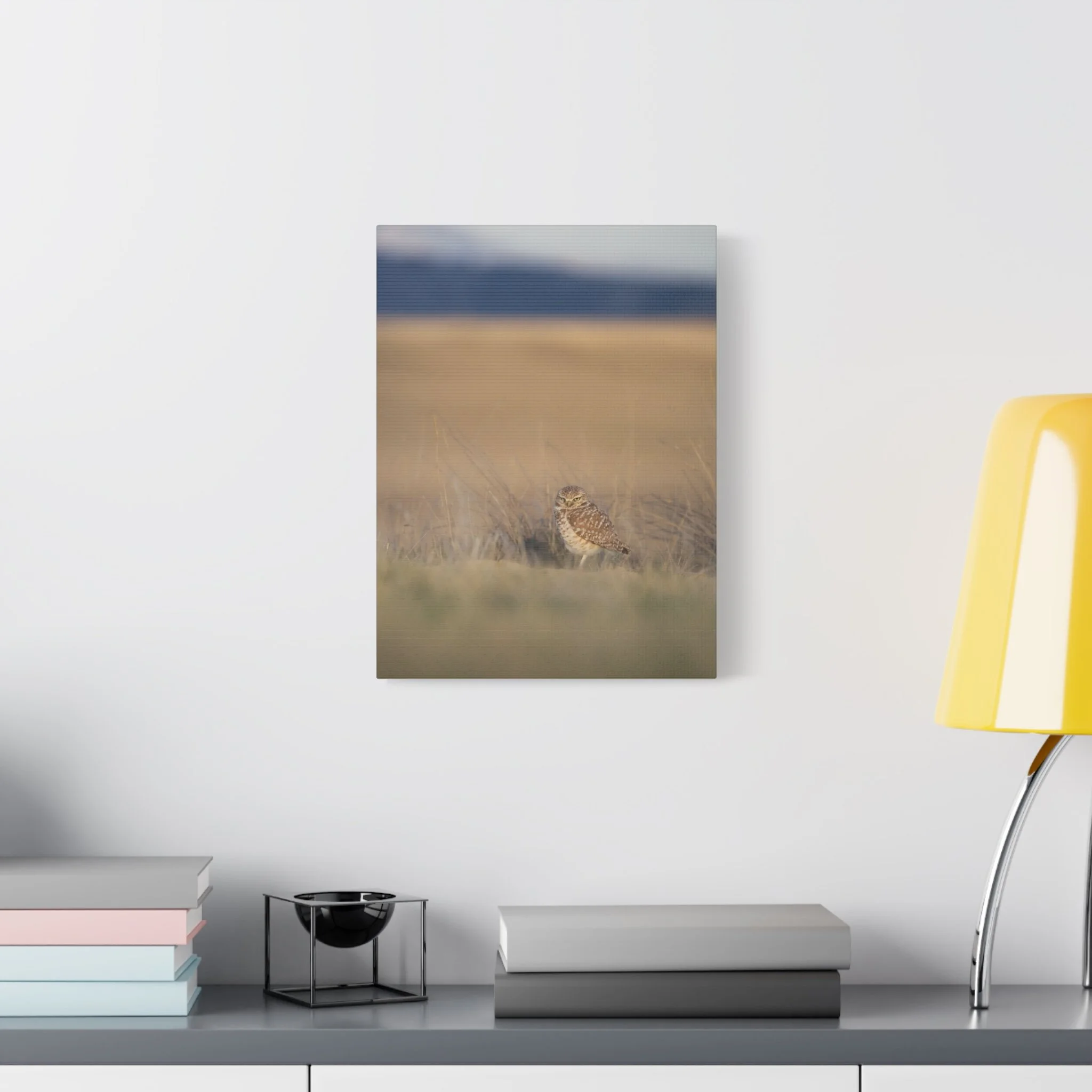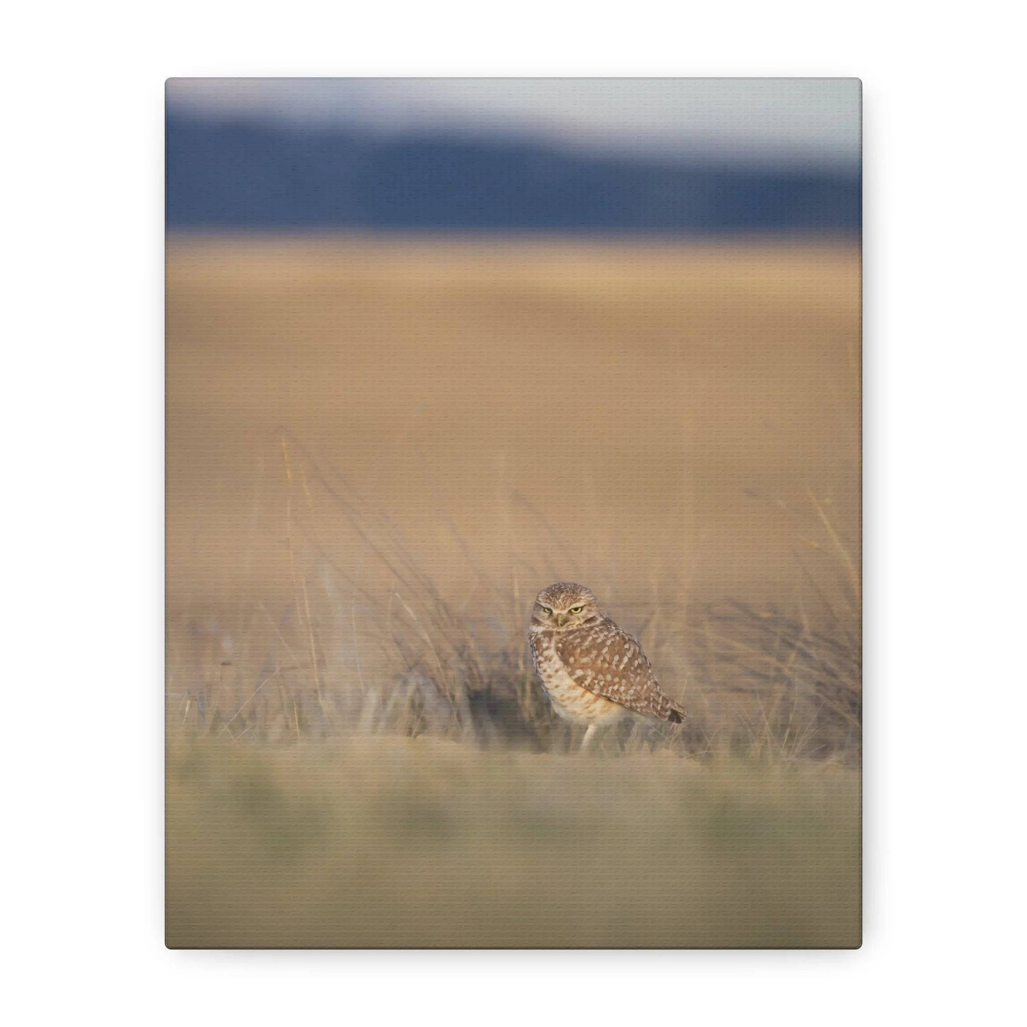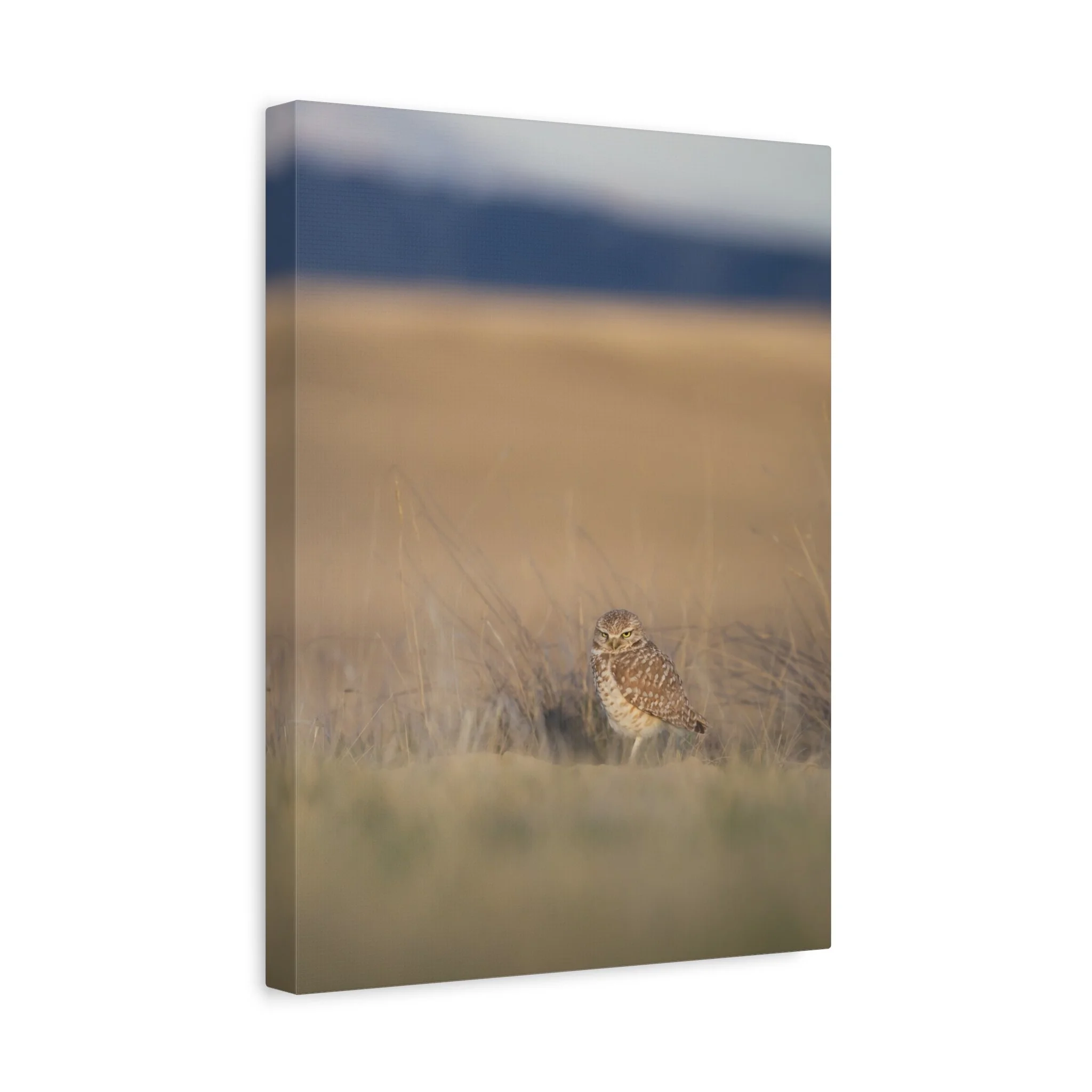 A silent moment captured on matte canvas: a burrowing owl - eyes fixed on the earth as twilight tightens. The stretched canvas texture brings out feather detail and muted earth tones, giving the scene a tactile, intimate presence on your wall. Hang it in a reading nook, study, or entryway to invite a pause — a small, wild witness to the rhythms of dusk. The subtle matte finish keeps glare away, so the owl’s furtive gaze reads clearly from across the room. This piece fits into calm, nature-focused spaces where quiet observation and a connection to the outdoors are treasured.