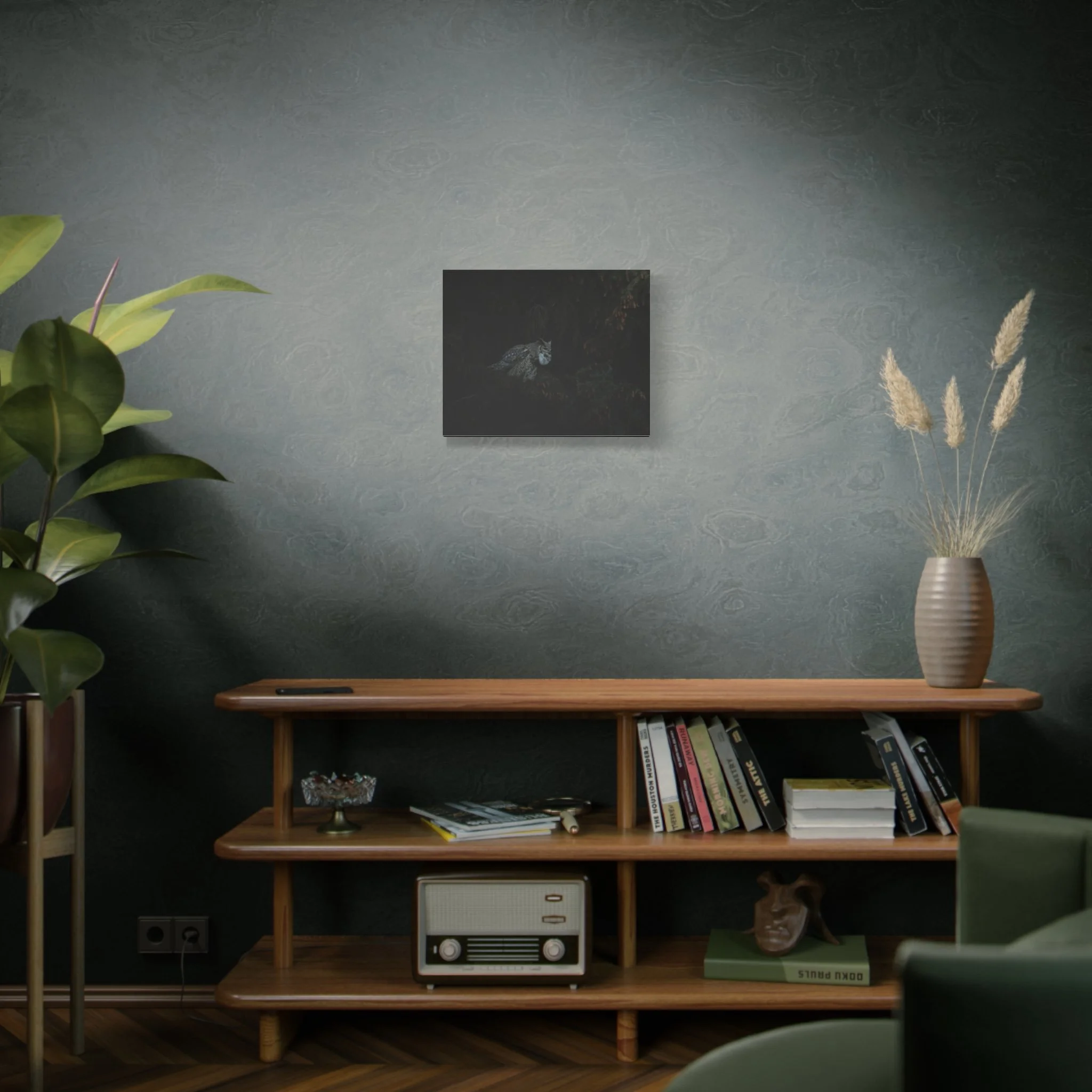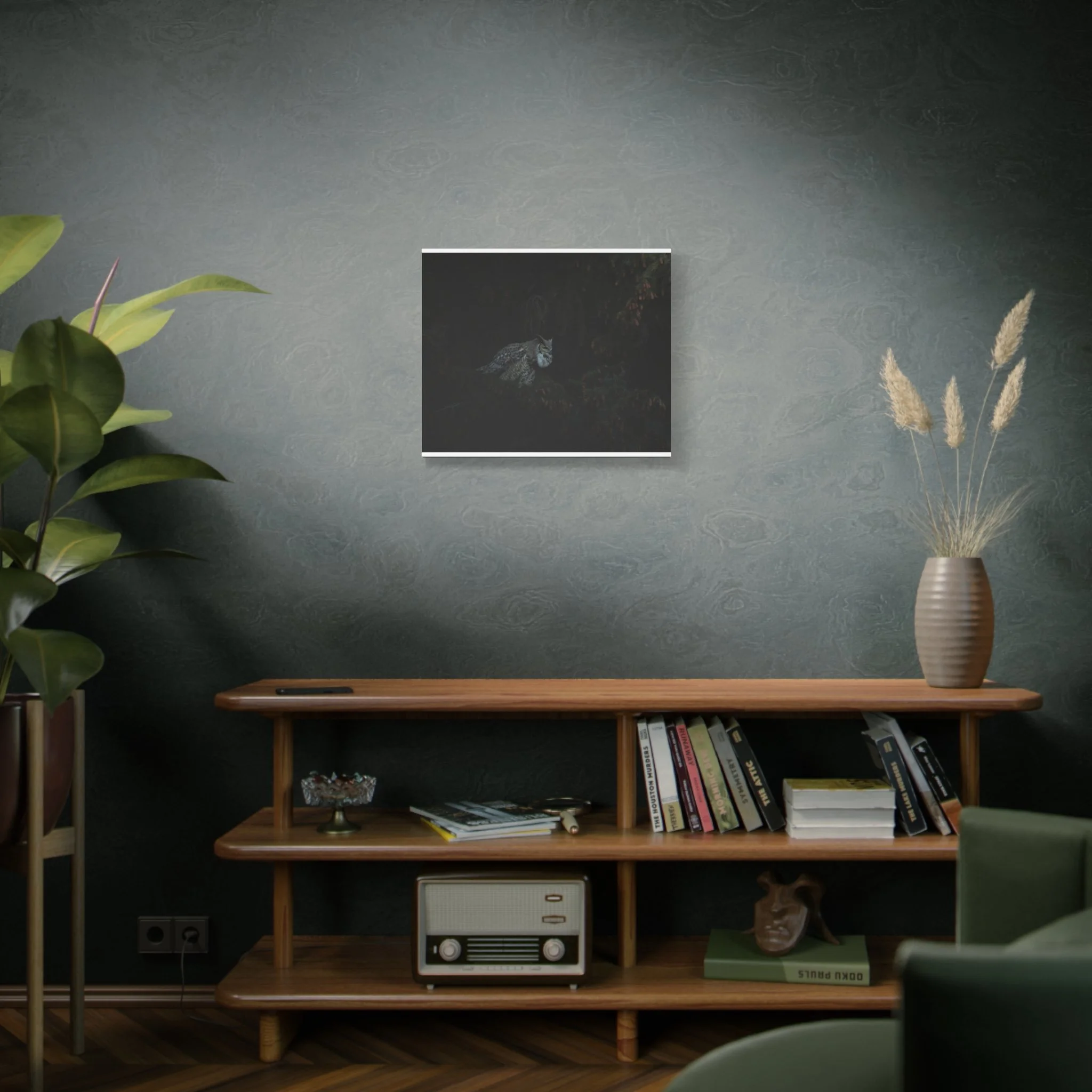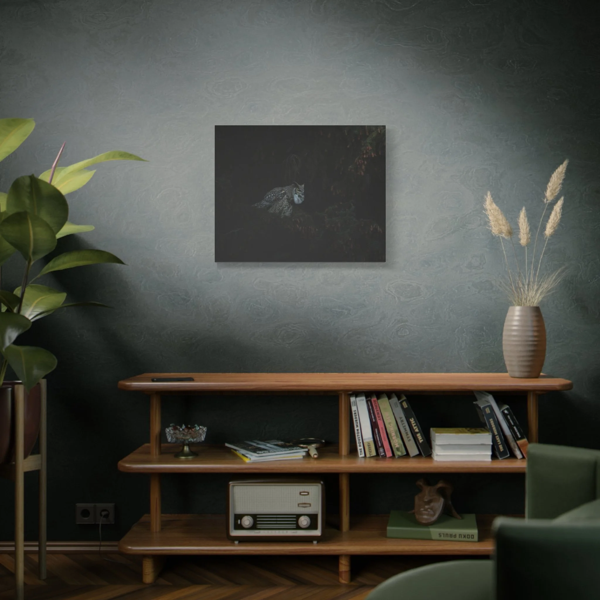 A striking matte canvas print of a great horned owl calling out to its mate. The muted matte finish keeps reflections low, letting the owl’s patterned feathers and intense gaze hold the room’s attention. Hung in a quiet corner or above a reading chair, this print brings a hush of evening woods — the steady heartbeat of the night, wings folded against shadow, and that single, resonant call cutting through still air. For birders, nature-lovers, or anyone who favors moody, contemplative décor, this canvas creates a place of calm and curiosity. The stretched profile gives the image presence on the wall while the soft rubber feet and included back-hanging make installation simple and secure.